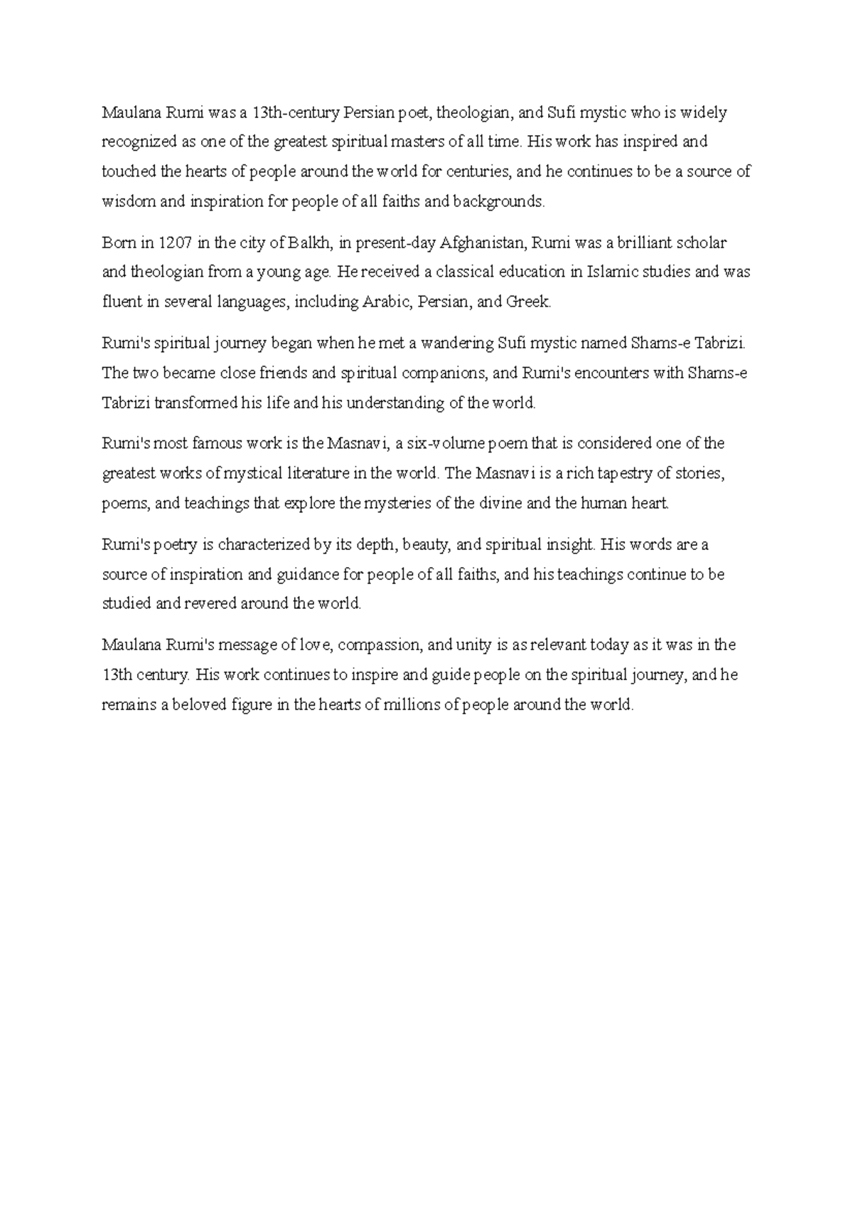 Maulana Rumi Religion Maulana Rumi was a 13th century Persian poet