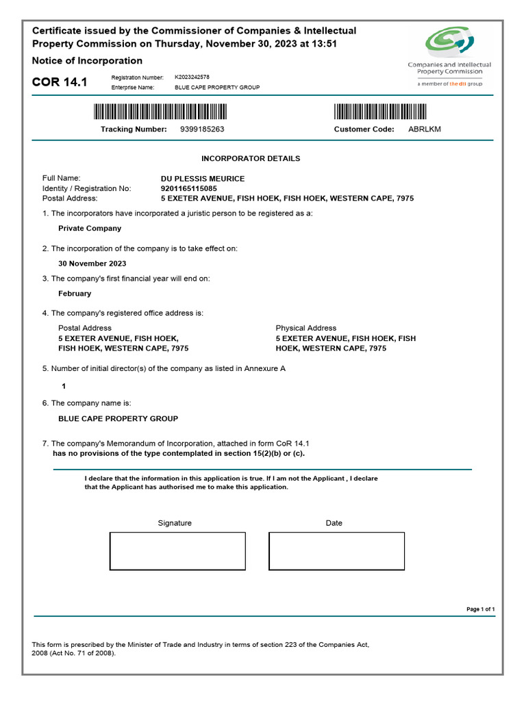 Qualification Certificate