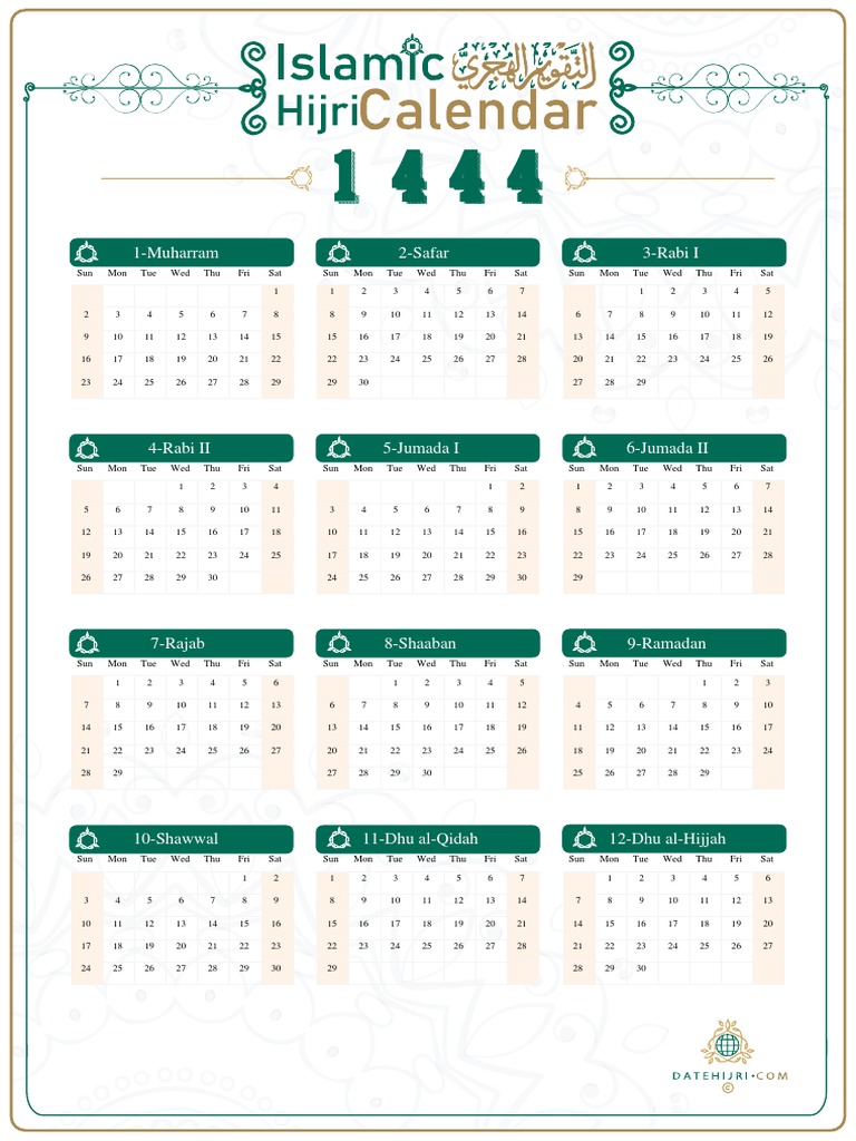 Hijri Calendar Safar 1444 AH IslamicTimeDate com