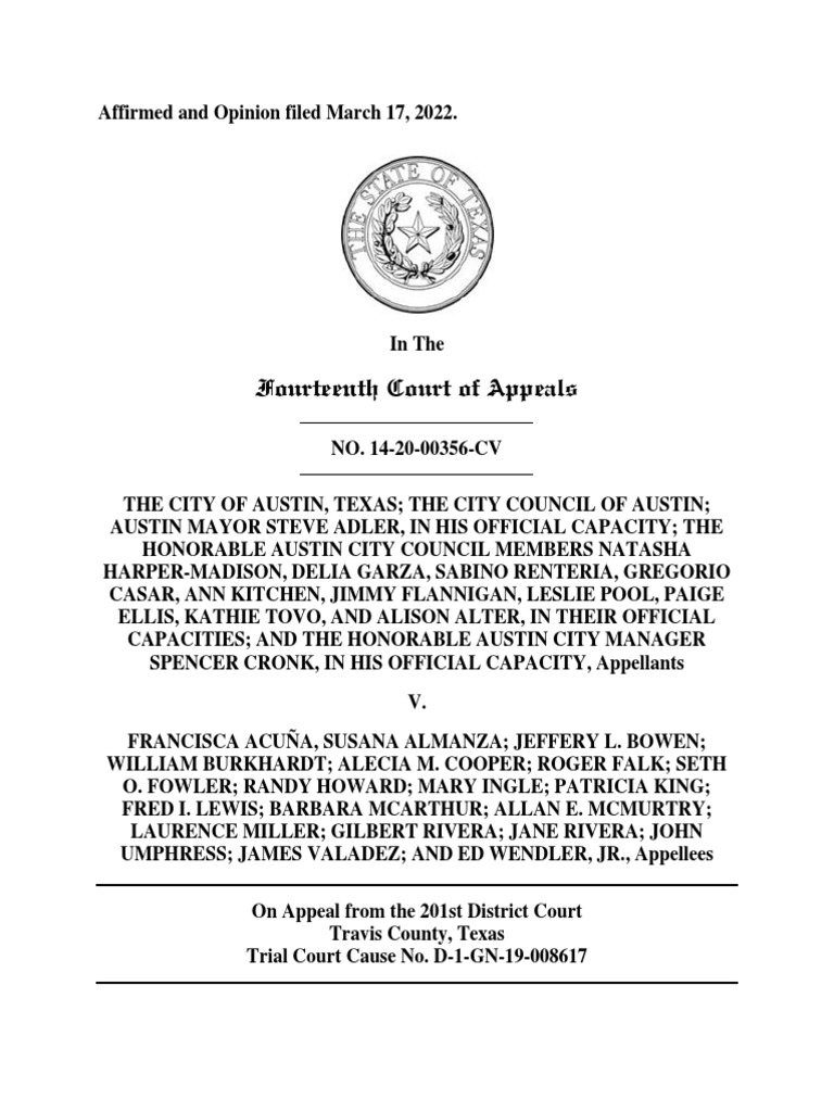 Texas 14th Court of Appeals Ruling On Upholding Travis County Judge #39 s