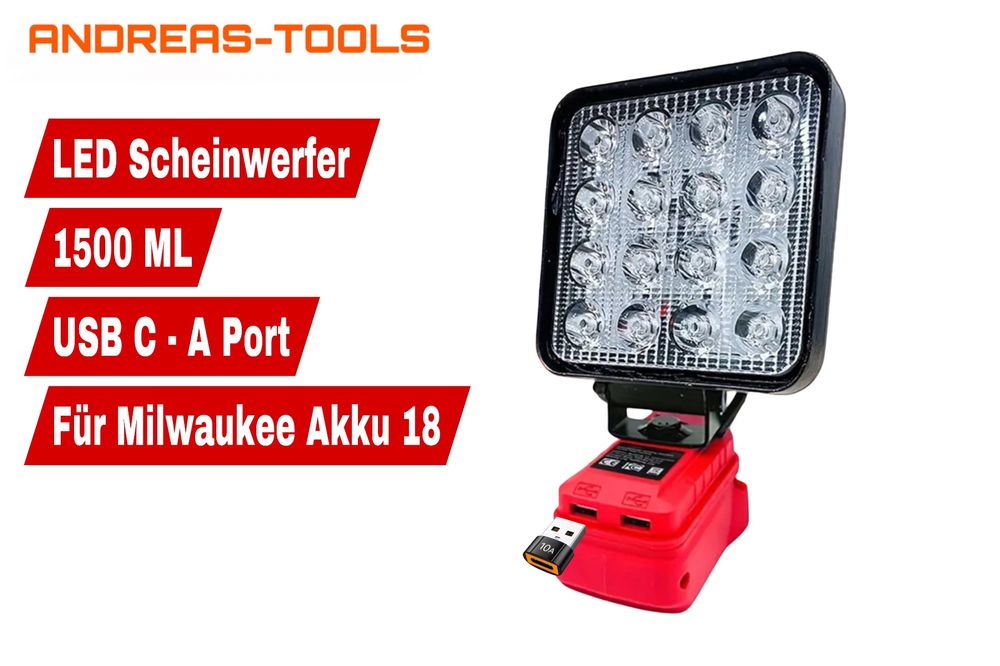 LED Scheinwerfer 1500 ML mit USB C A für Milwaukee Akku 18 (Neu und