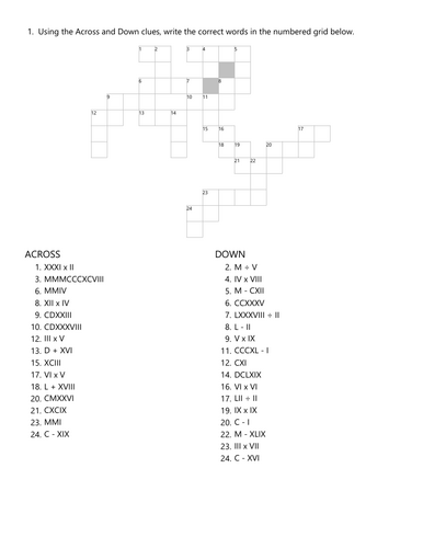 Roman Numerals Crossword Roman Numerals Words Puzzles TPT