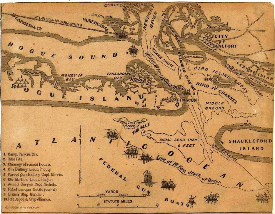 Beaufort North Carolina History: 1854 Map of Beaufort Harbor