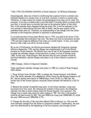 Fillable Online quot THE 1752 CALENDAR CHANGE in North America quot by William