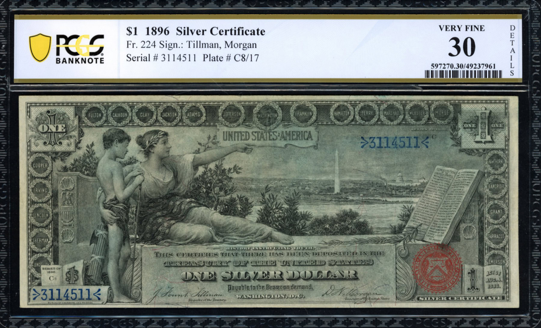 1896 Silver Certificate Educational Note Fr 224 $1 PCGS VF30 eBay