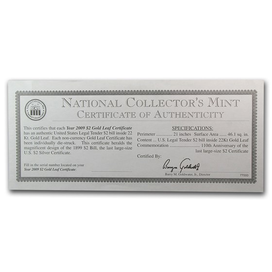 Buy 005 oz Gold Foil Note 1899 $2 Silver Certificate (Replica) APMEX