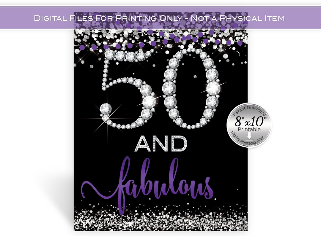 50 and Fabulous Table Sign 8x10 Printable 50th Birthday Purple