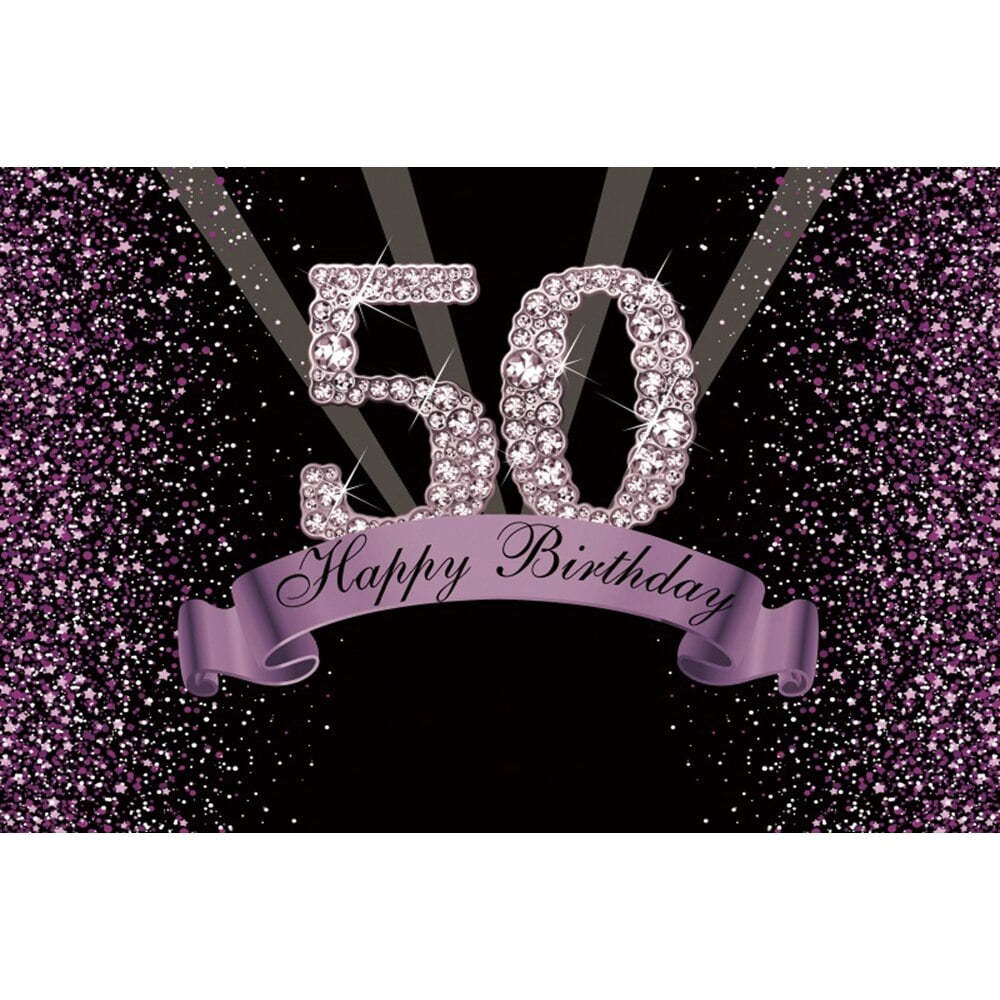 7x5ft Happy 50th Diy Birthday Party Purple Sparkle Diamonds Sequins