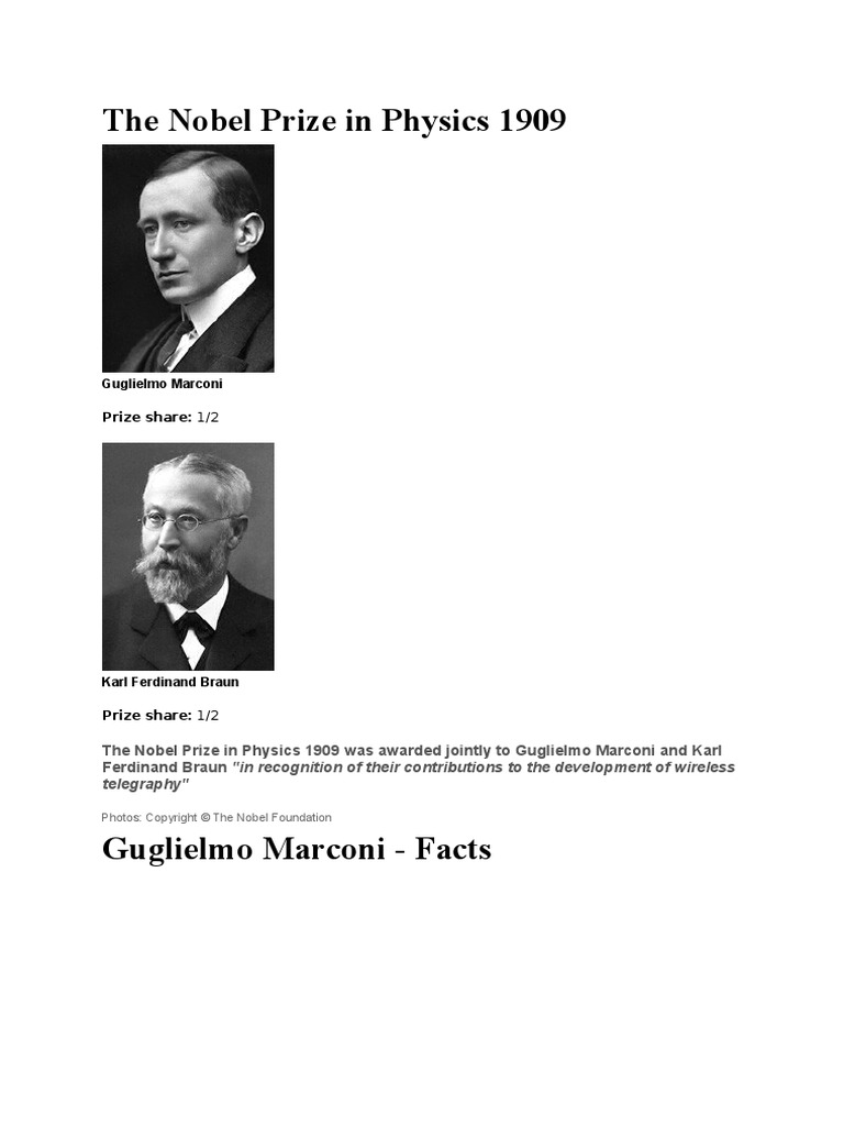 Guglielmo Italian electrical engineer who shared the 1909 Nobel