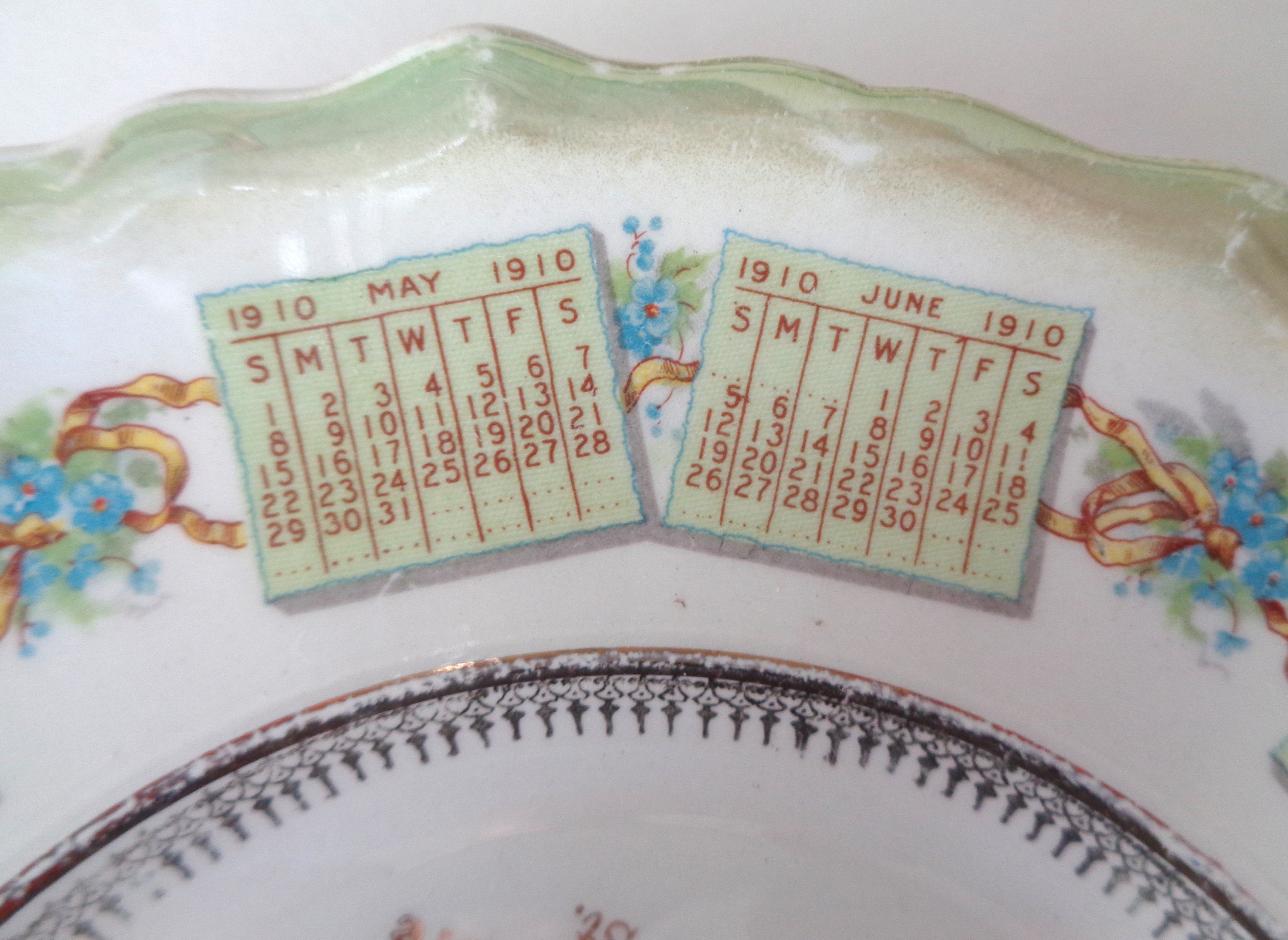 1910 calendar antique china plate Harrisville Wisconsin tiny village