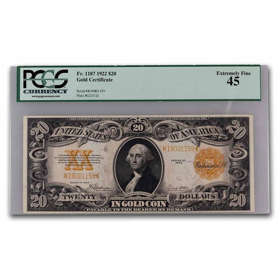 Buy 1922 $20 Gold Certificate XF 45 PCGS (Fr#1187) APMEX