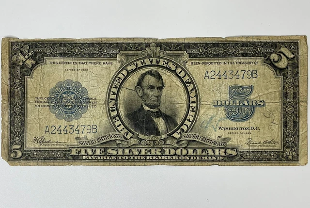 1923 $5 SILVER Certificate Porthole Note Blue Seal FR 282 Large Size