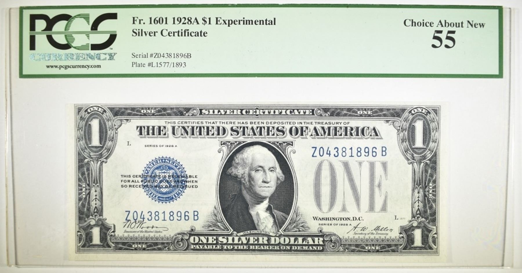 1928 A $1 SILVER CERTIFICATE PCGS 55