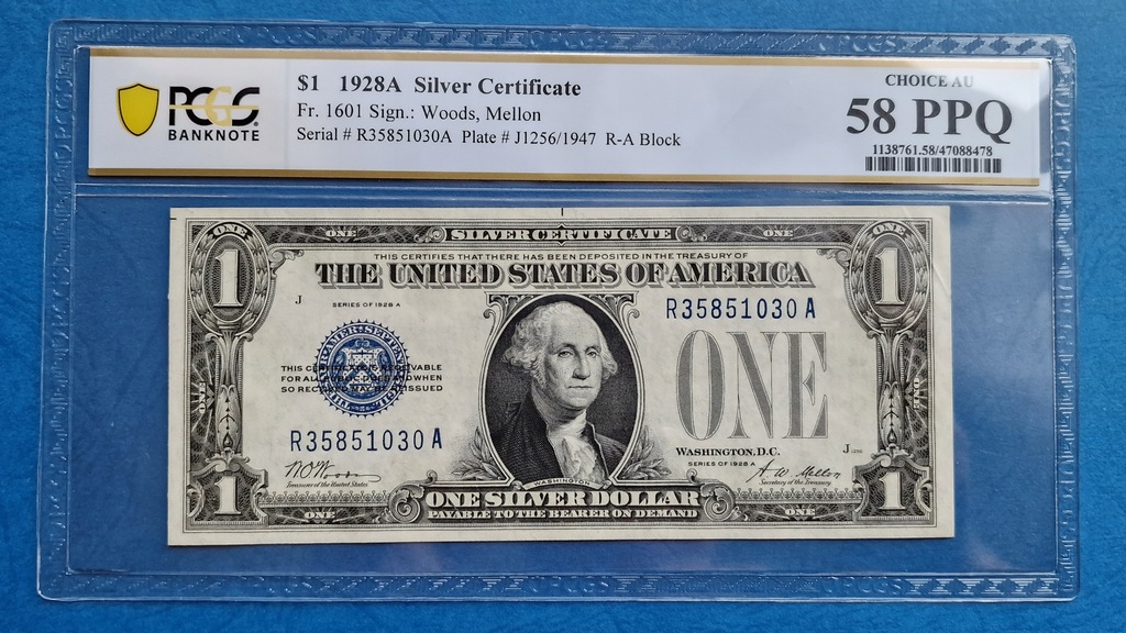 1 dolar USA 1928A Silver Certificate PCGS 58 PPQ 15100986279