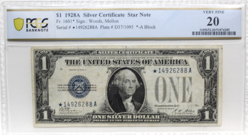 Fr 1601* (*A Block) 1928A $1 Silver Certificate Star Note Woods