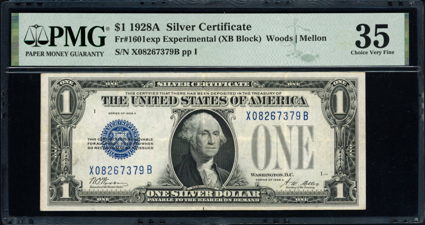 Fr 1601exp (XB Block) 1928A $1 Silver Certificate Experimental Note