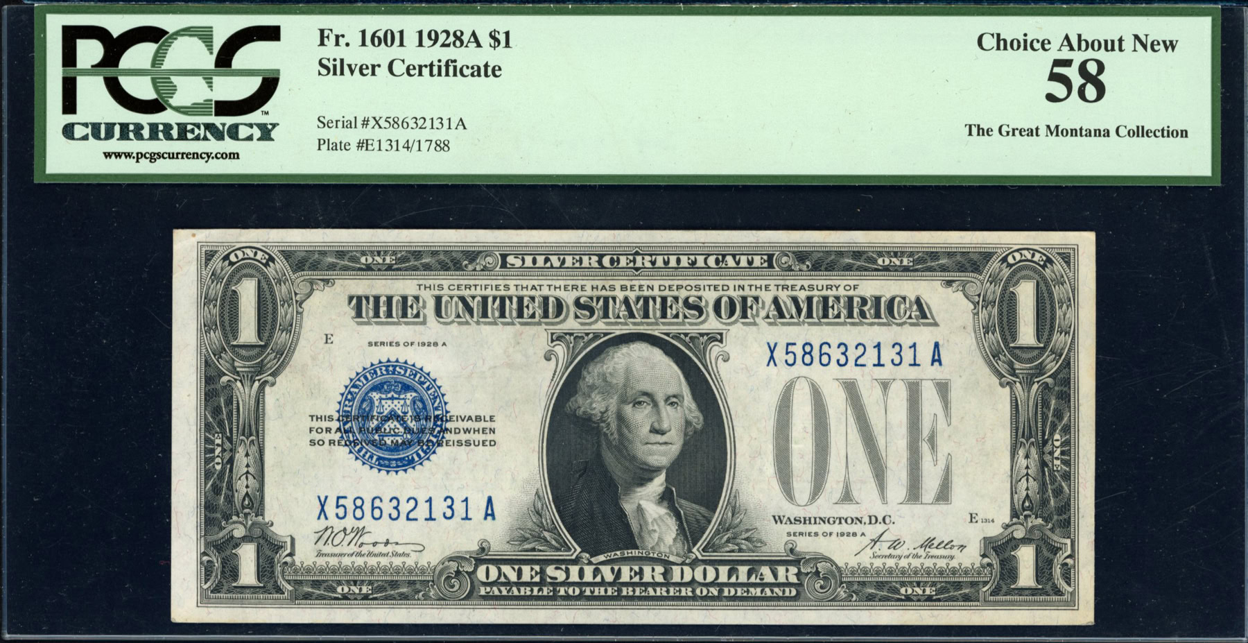 Fr 1601 1928A $1 Silver Certificate PCGS NoteFacts
