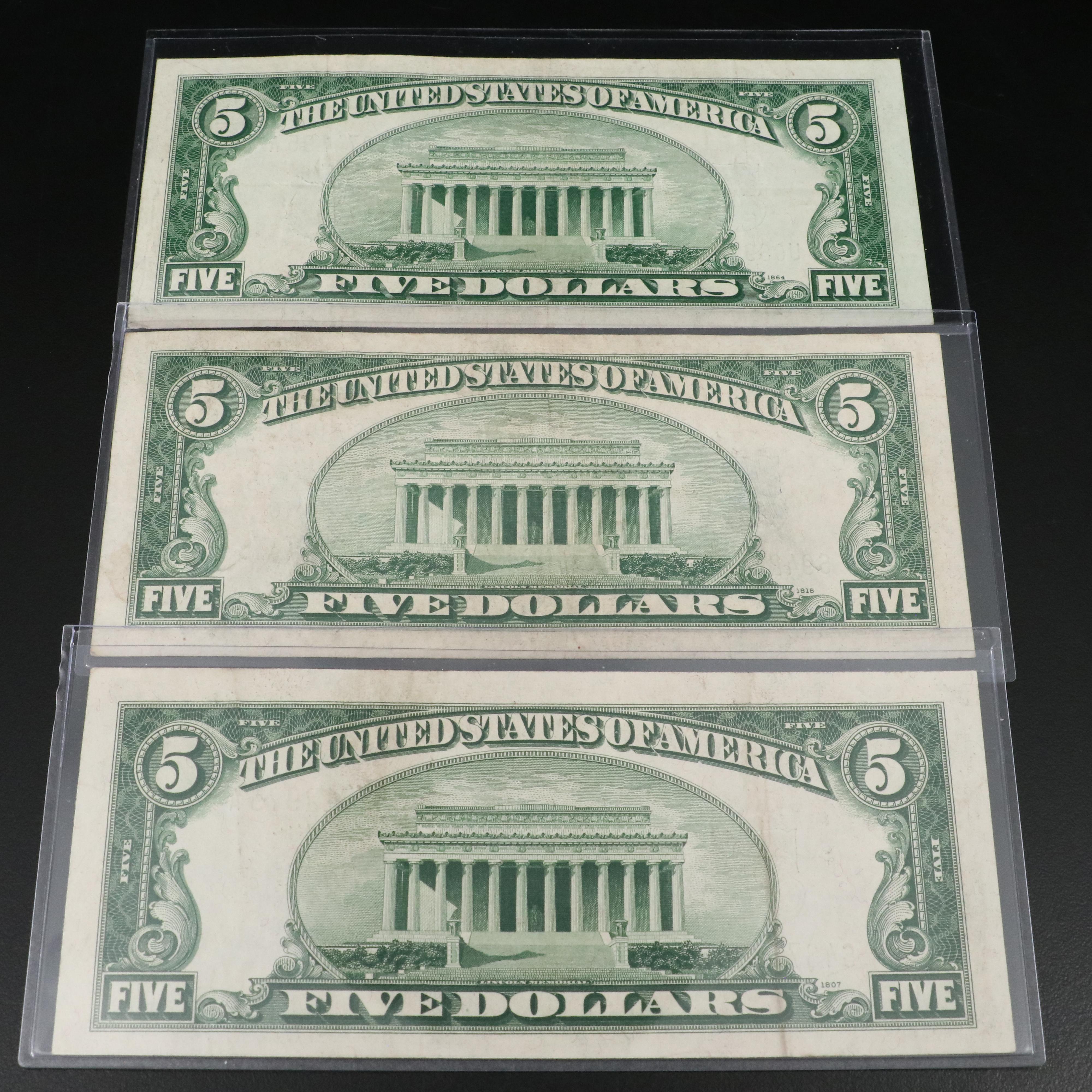 Nine 1934 Five Dollar Silver Certificates EBTH