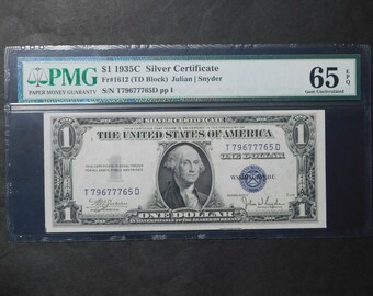 1935 C $1 SILVER CERTIFICATE S/N N 87062617 38 D PMG 66 quot PRICE FOR