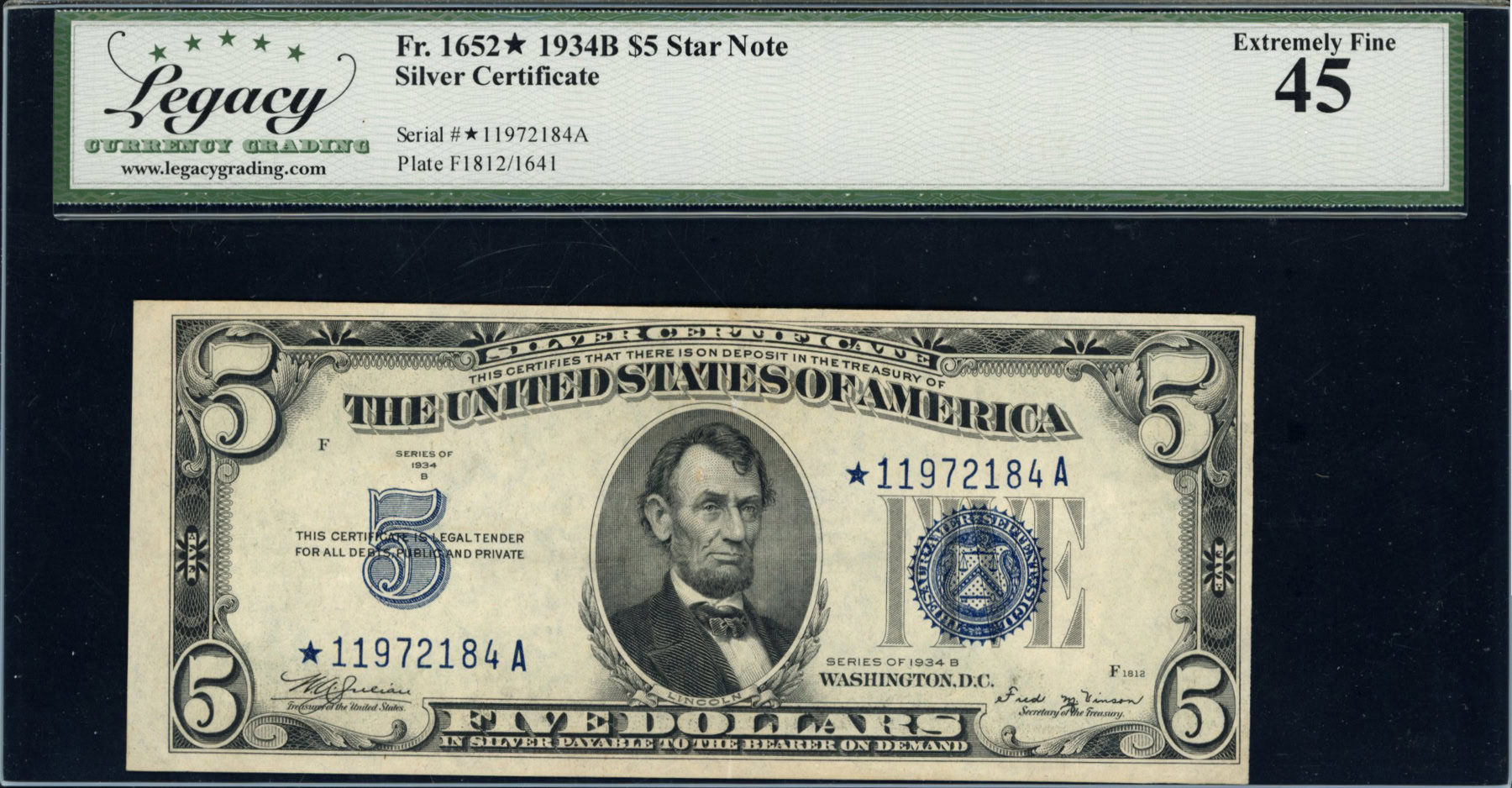 Fr 1652* (*A Block) 1934B $5 Silver Certificate Star Note Julian