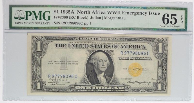 1935A $1 SILVER CERTIFICATE quot NORTH AFRICA quot YELLOW SEAL PMG 65 EPQ SCARCE