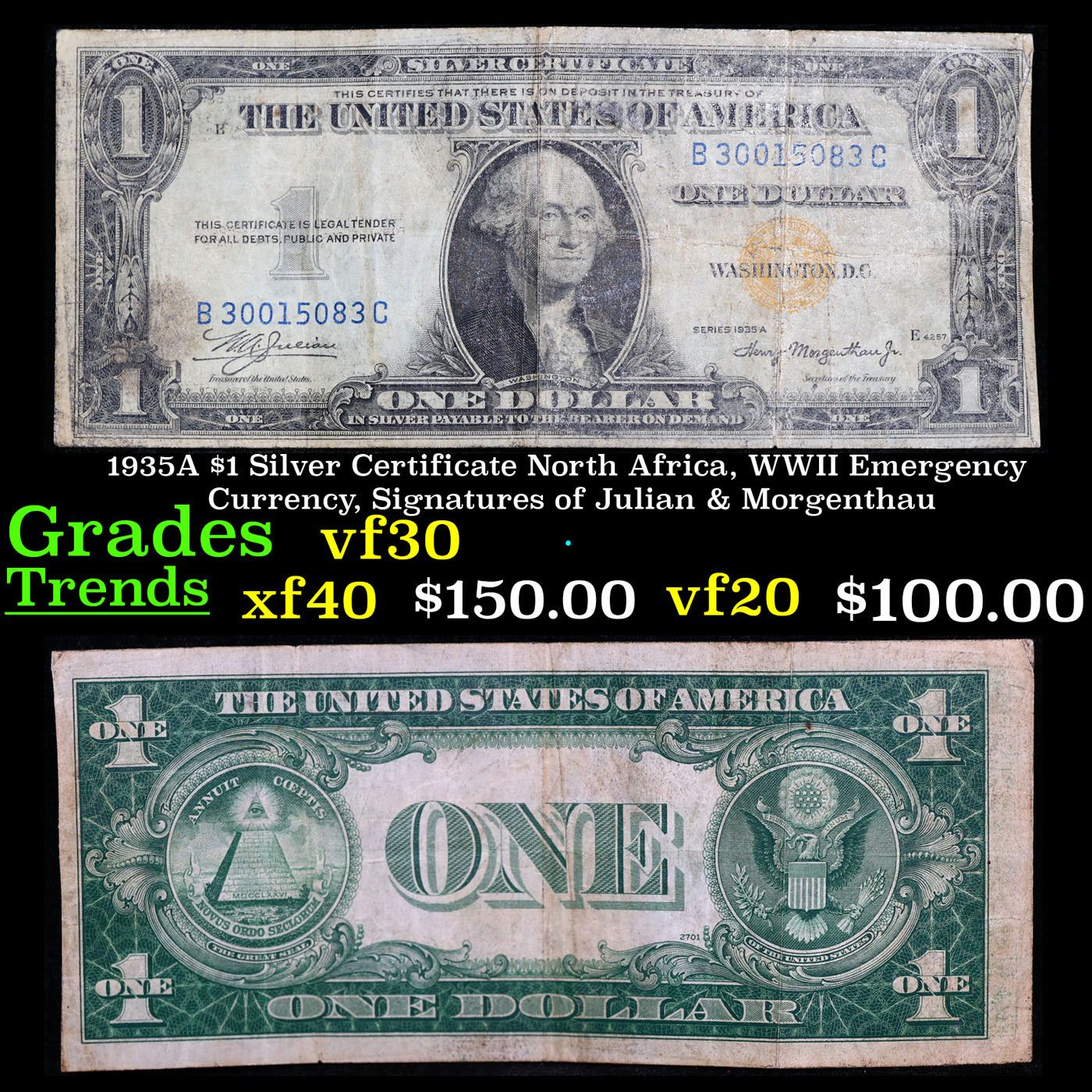 1935A $1 Silver Certificate North Africa Signatures of Julian