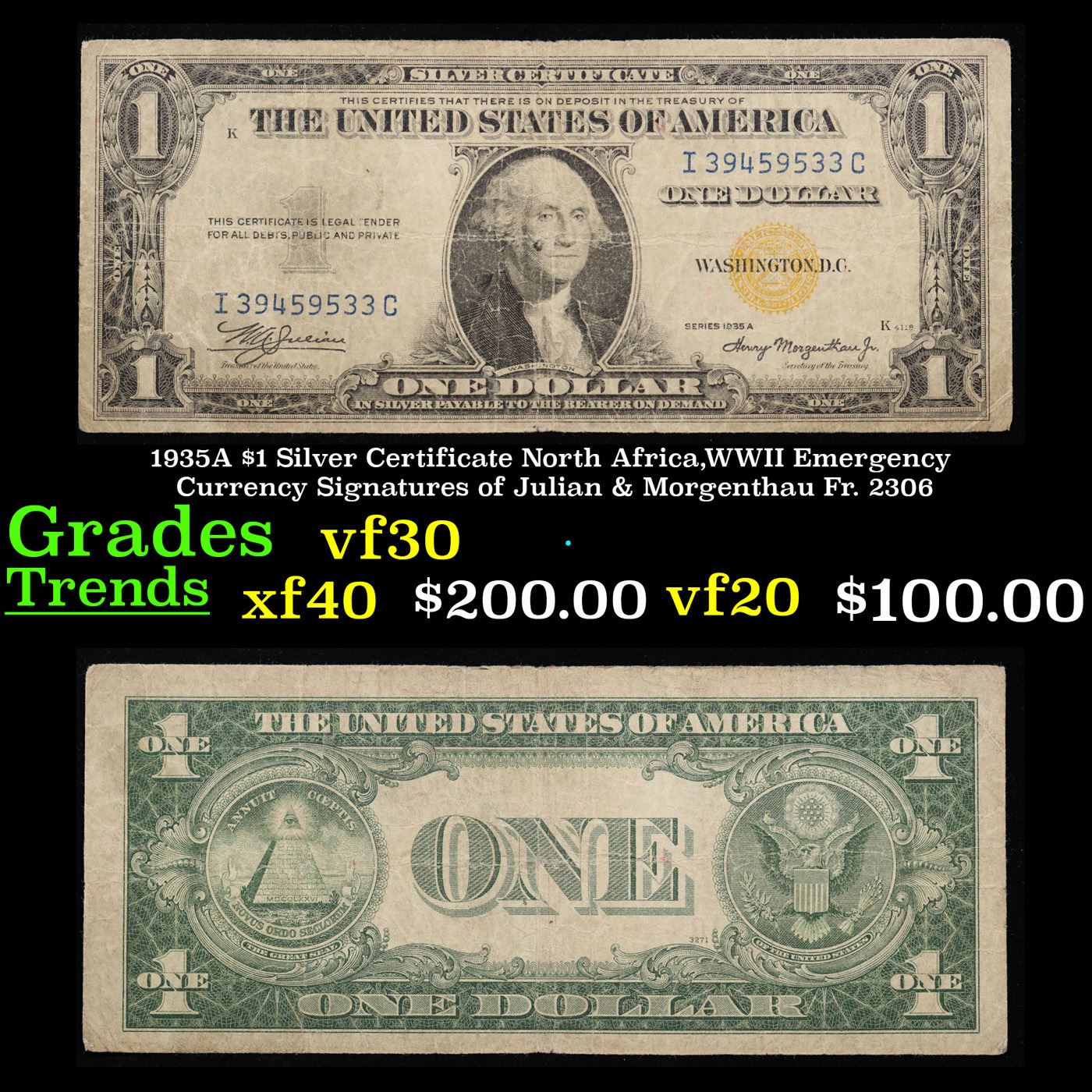 1935A $1 Silver Certificate North Africa WWII Emergency Currency Grades