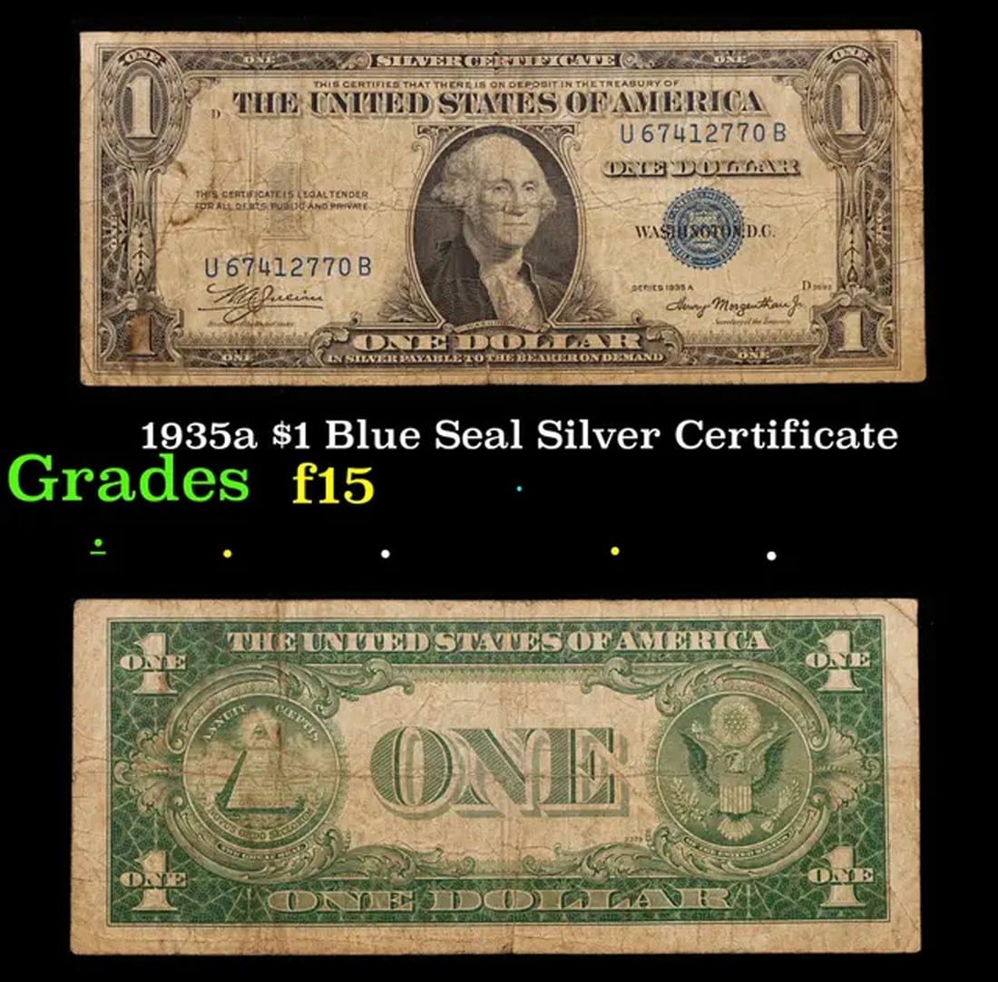 Sold at Auction: 1935A $1 Blue Seal Silver Certificate Grades vf very fine