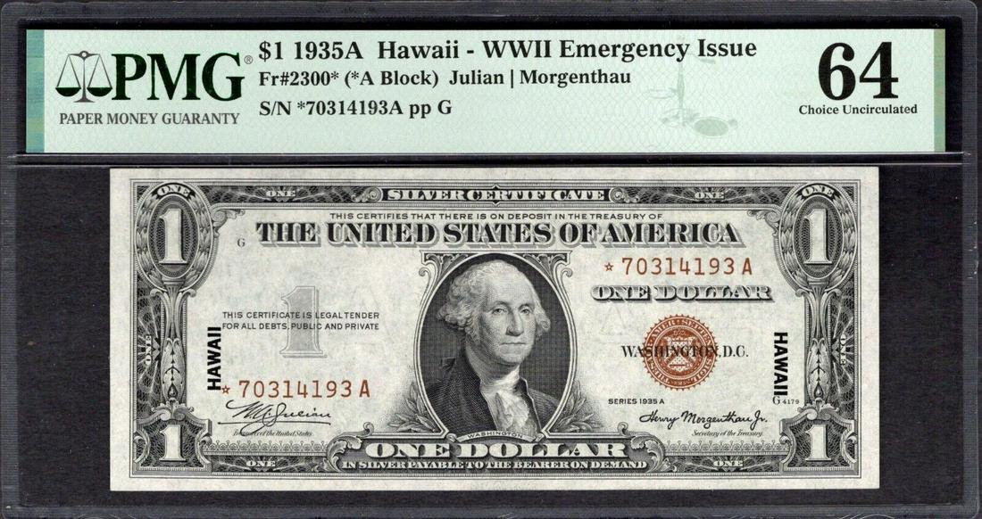 At Auction: 1935A $1 Silver Certificate Hawaii WWII Emergency Currency