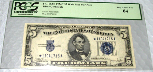 1935C $5 Silver Certificate Wide Face Star Blue Seal PCGS64 S537 eBay