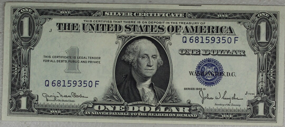 Rare Silver certificate 1 dollar bill 1935d series Etsy