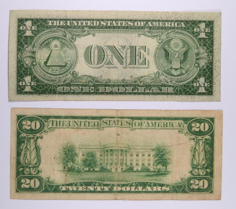 1 1935E $1 SILVER CERTIFICATE STAR NOTE 1 1928 TWENTY DOLLAR FEDERAL