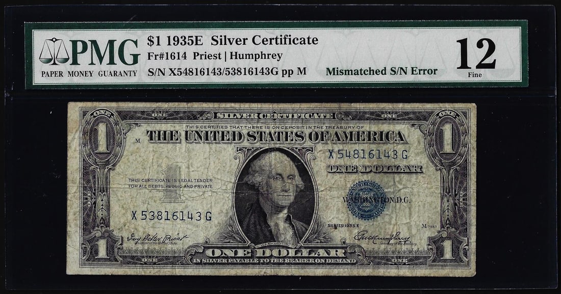 1935E $1 Silver Certificate Note Mismatched Serial Number Error PMG