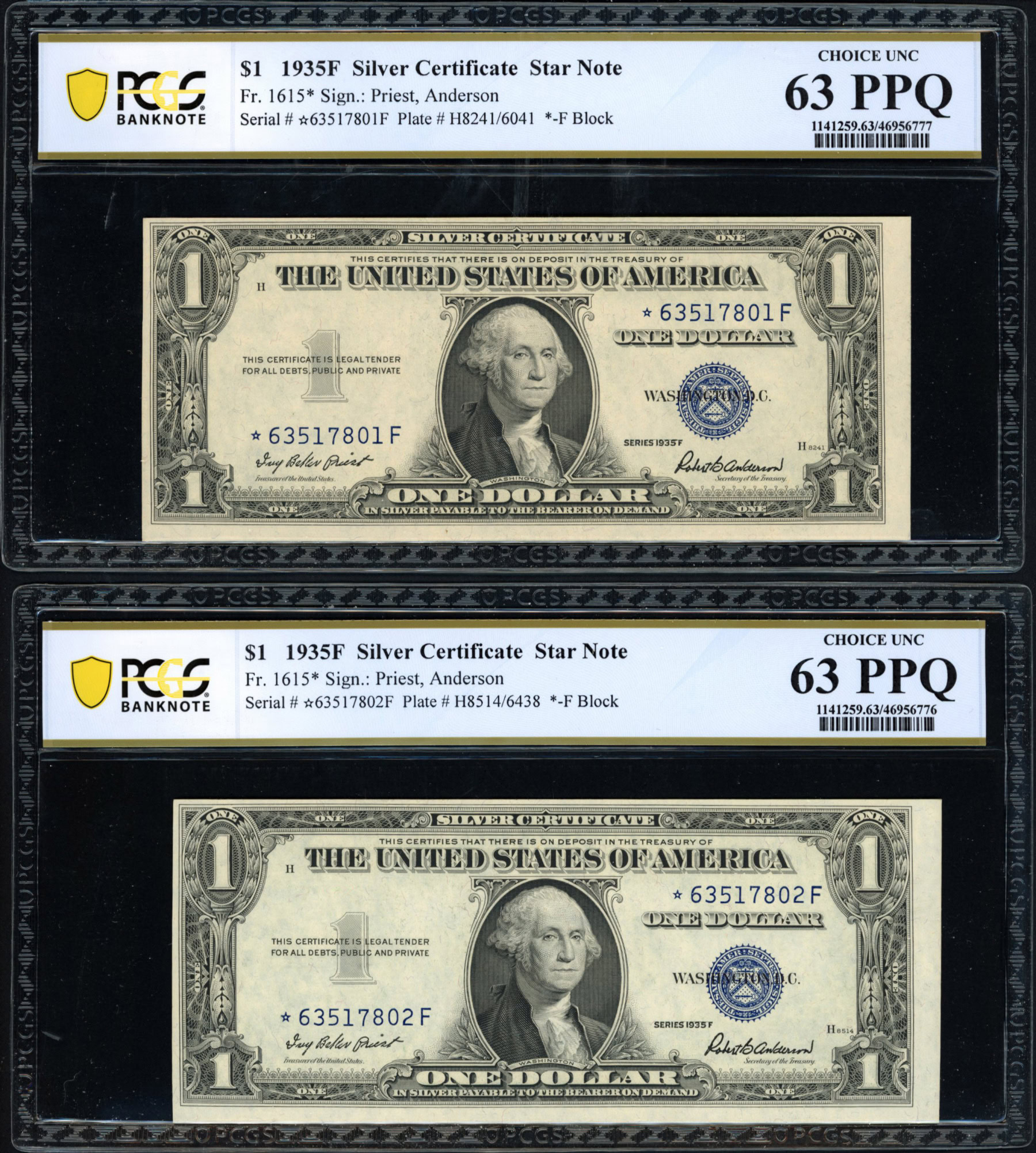 Fr 1615★ (★F Block) 1935F $1 Silver Certificate Star Notes Sequential