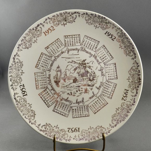 Source Unknown Accents 952 Calendar Porcelain W Gold Trim Windmill