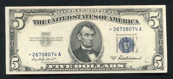 1953 US 5 Dollar Silver Certificate Note Money Currency With Etsy