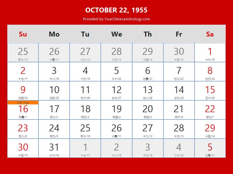Chinese Calendar Oct 22 1955: Auspicious Things to Do and Hours Bazi