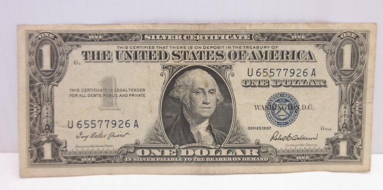 SILVER CERTIFICATE SERIES 1957 A ONE DOLLAR NOTE Property Room
