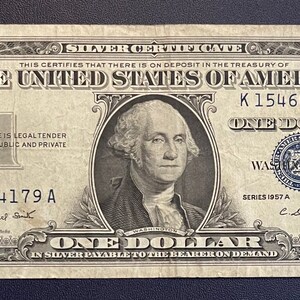 1957 Silver Certificate 1 Dollar Bill Etsy