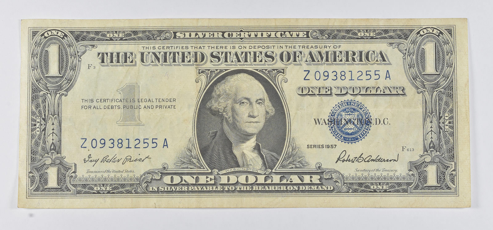 1957 A Silver Certificate Blue Label Seal One Dollar Bill