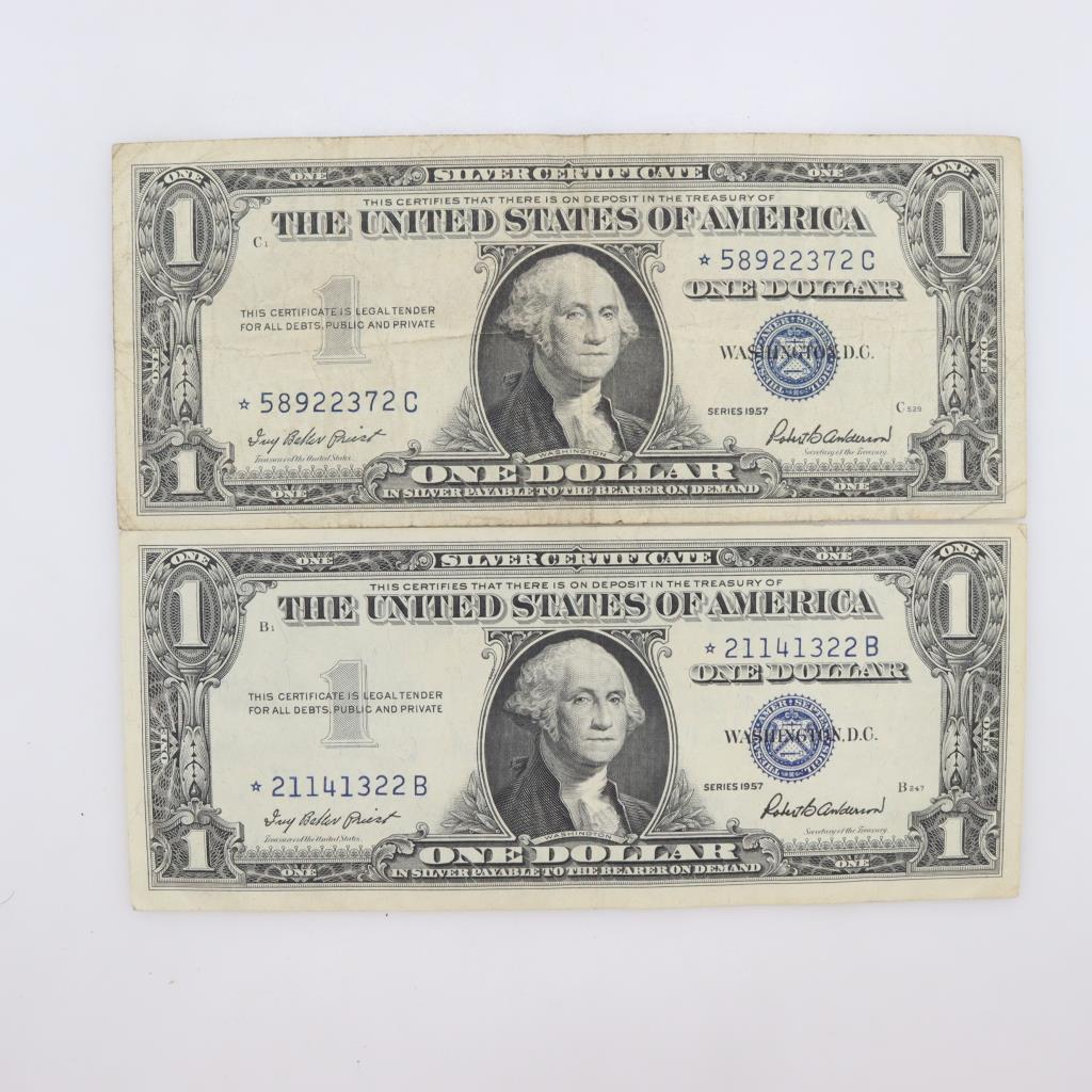 1957 Silver Certificate Star Note One Dollar 2 Pieces Property Room