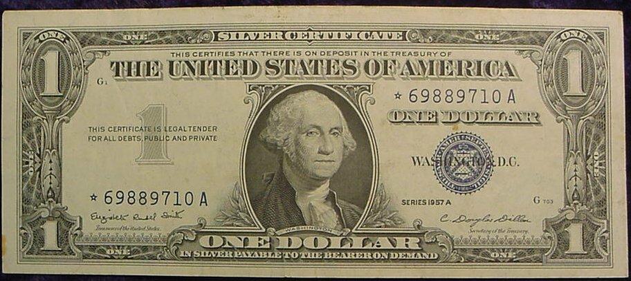 1 Dollar 1957A star note (replacement) 1957 Issue Silver