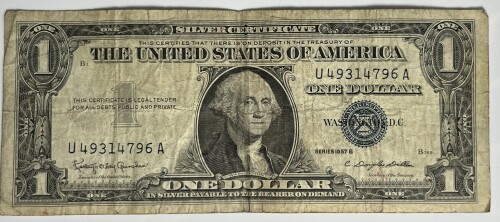 1957 One Dollar Bill Silver Certificate Blue Seal