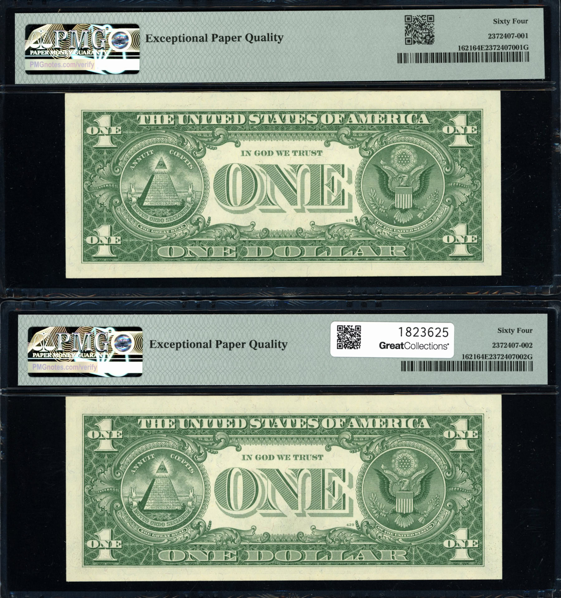 US Silver Certificate 1957B $1 x 2 RUNNING SERIAL NUMBER PMG 66 EPQ GEM
