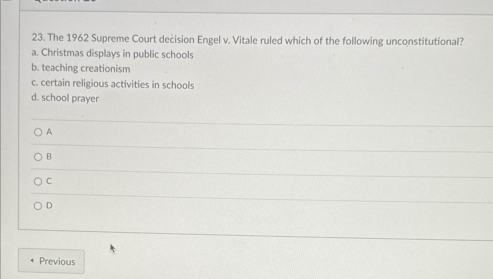 Solved The 1962 Supreme Court decision Engel v Vitale Chegg com