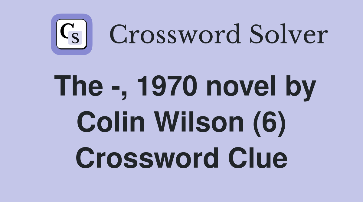 The 1970 novel by Colin Wilson (6) Crossword Clue Answers