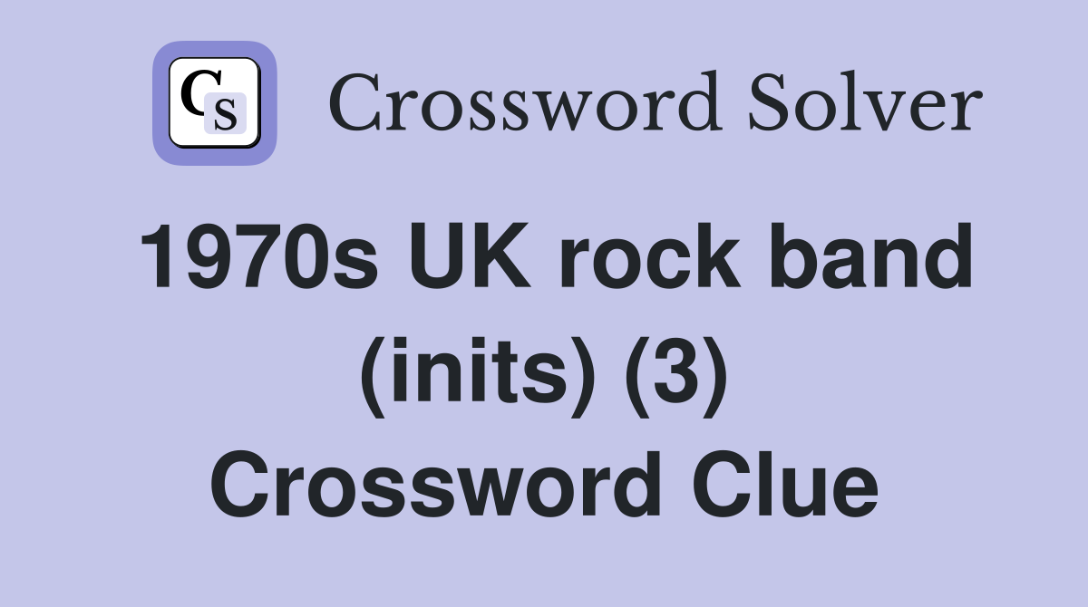 1970s UK rock band (inits) (3) Crossword Clue Answers Crossword Solver