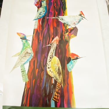 BRIAN WILDSMITH Vintage 1971 Woodpeckers March Calendar Poster ~ 36 quot x