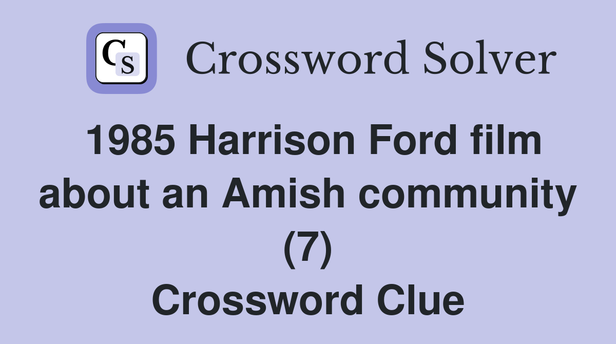 1985 Harrison Ford film about an Amish community (7) Crossword Clue