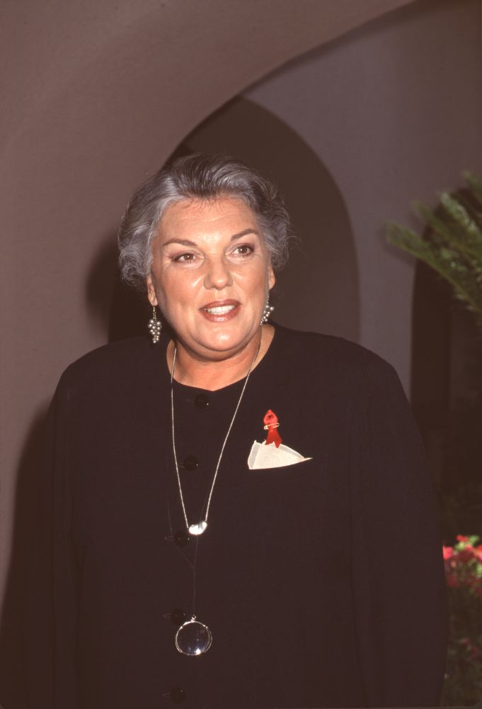 Tyne Daly With Long Silver Glass Necklace And Red Ribbon Pin Cbs Tca